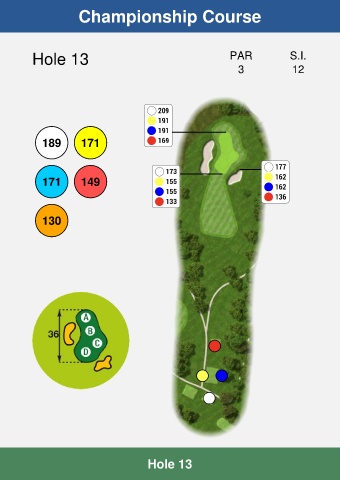 Championship Course Hole 13 PAR S.I. 3 12 189 171 171 149 130 Hole 13