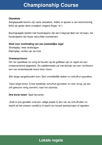 onweerprotocol opgesteld. De caddiemaster zal met behulp van een luchthoorn